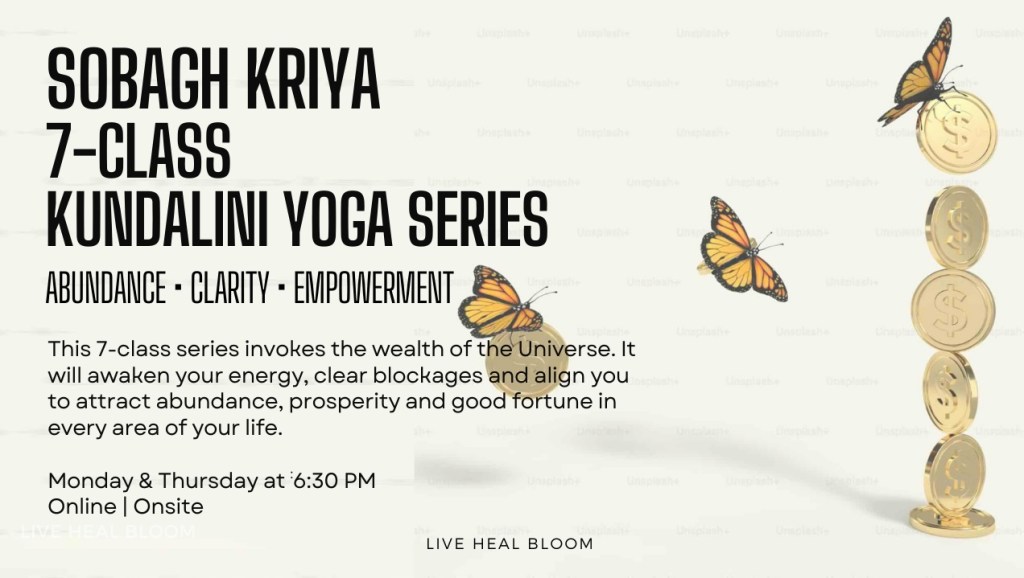 This January, the class series will be about the Sobagh Kriya, one of Kundalini Yoga’s most sacred and powerful kriyas to invoke the wealth of the Universe. Sobagh means good luck and grace, and this series will help clear blocks, steady your nervous system, and grounds clarity and trust for what’s ahead.